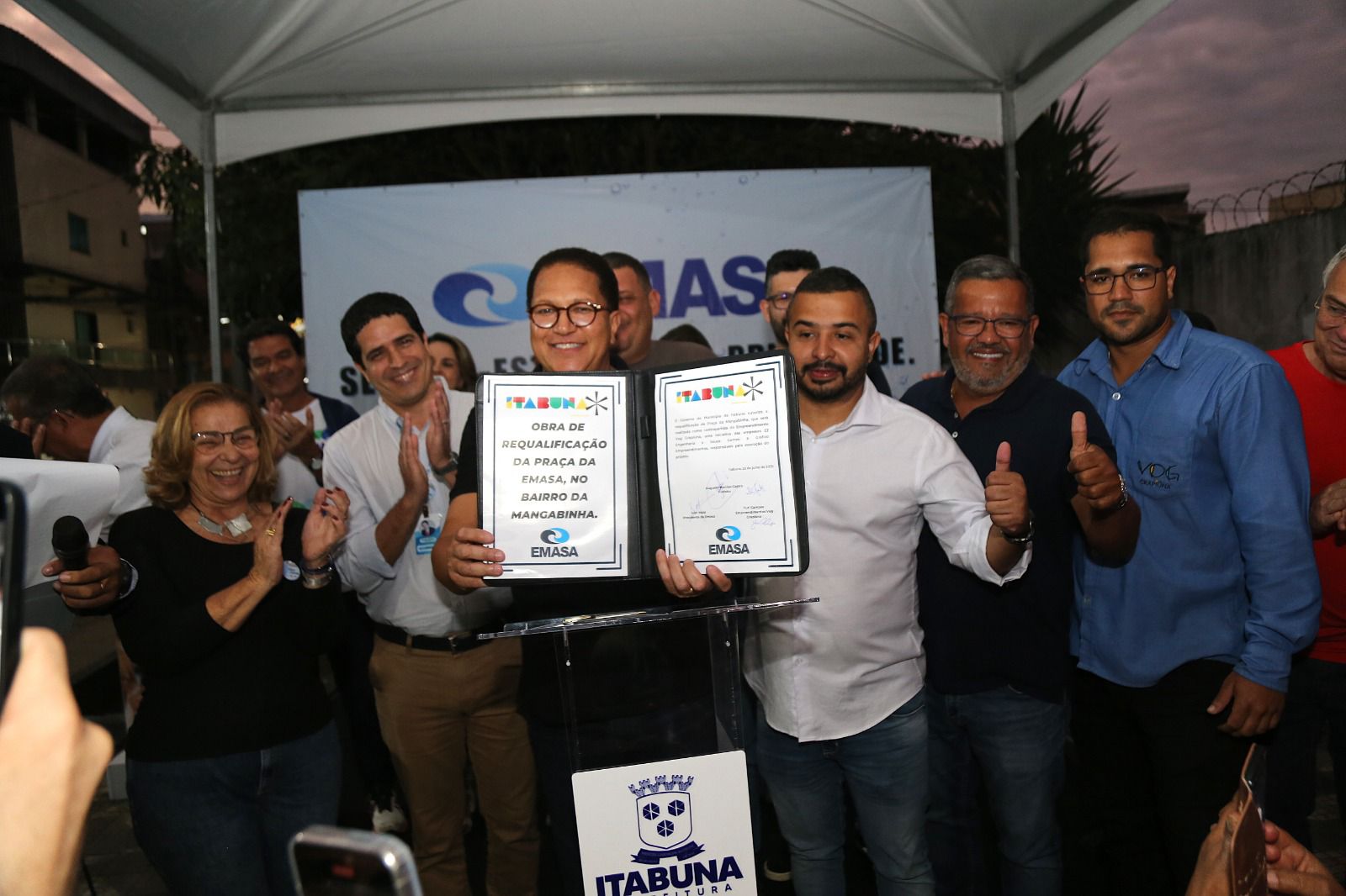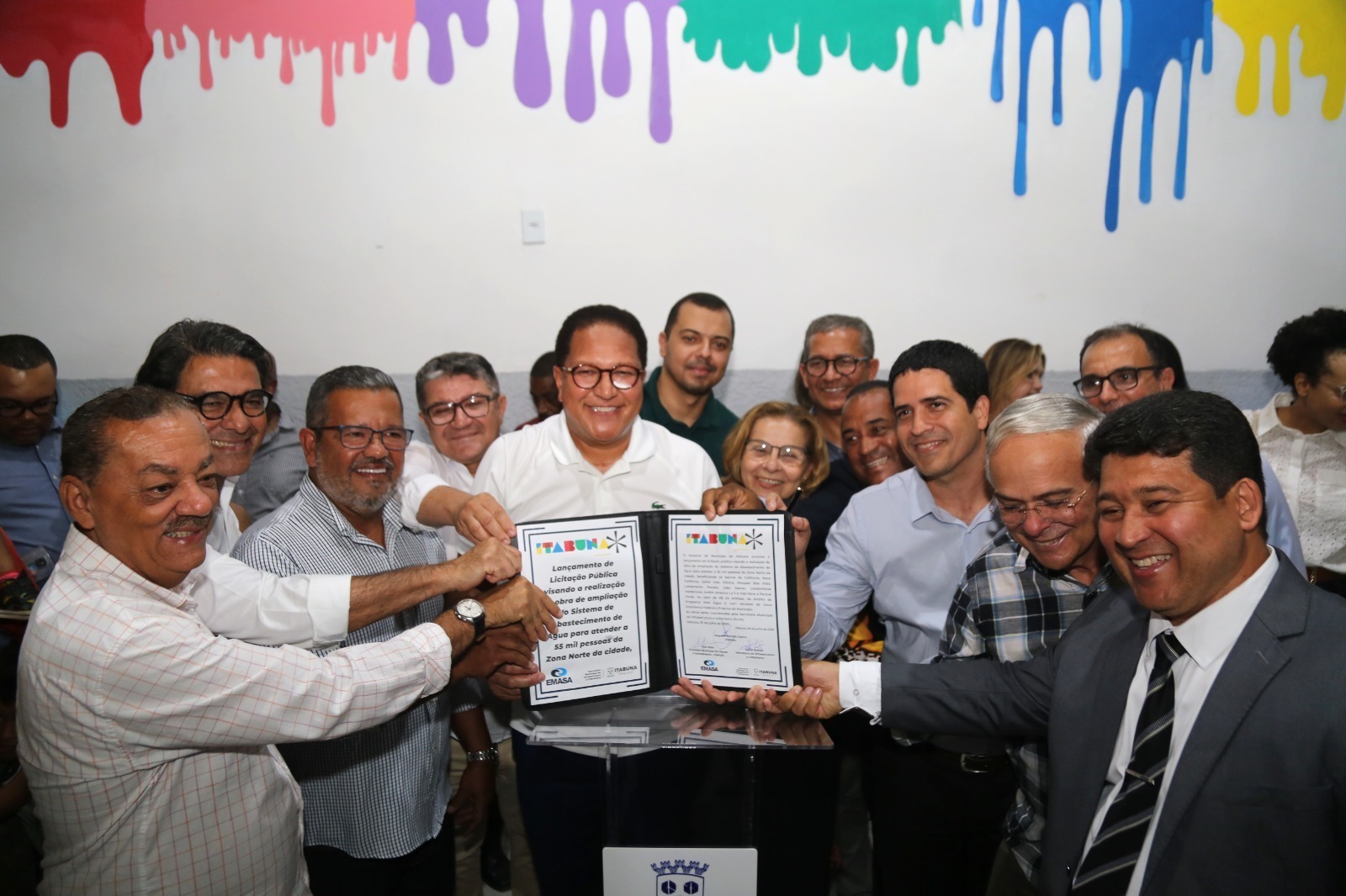 Prefeito Augusto Castro apresenta a ordem que dará início ao Mais Água III, ladeado pelo presidente da EMASA, Ivan [...]